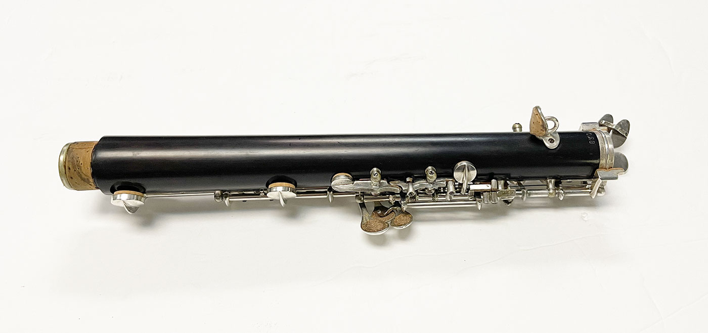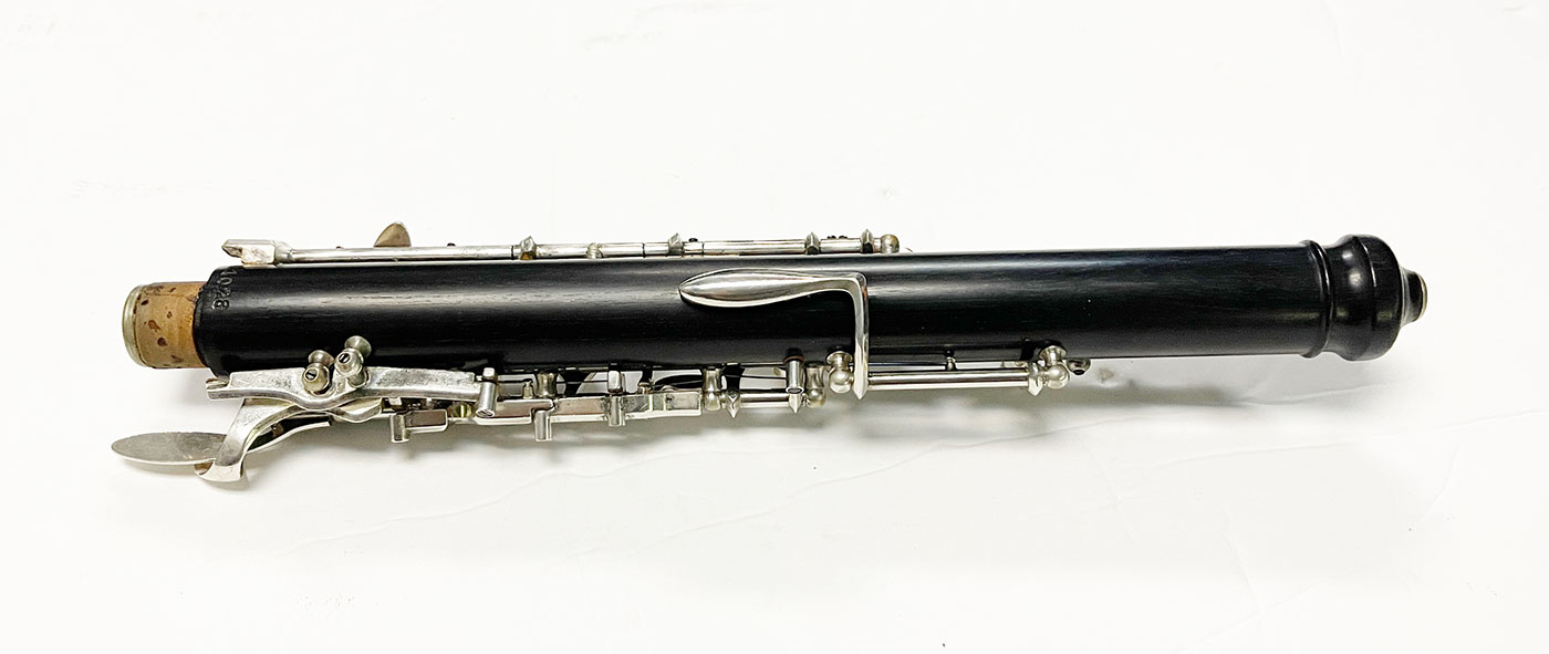The grenadilla wood body is in excellent condition. There was a tiny crack in the bell, and at the top of the middle joint. They had been stable for years and have just been professionally repaired by Brian Charles and are very hard to even locate.