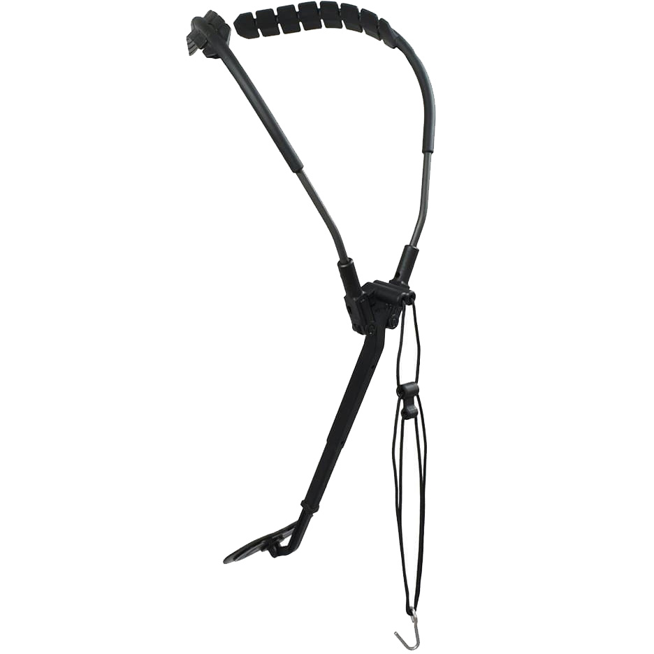 It’s simple to use. Swing both of the shoulder handles up until they click into place, pull out the telescopic slide and rotate the abdominal rest and you are ready to attach your instrument. The holder provides great comfort for the player when in a seated or standing playing position and does not slip like traditional straps.
