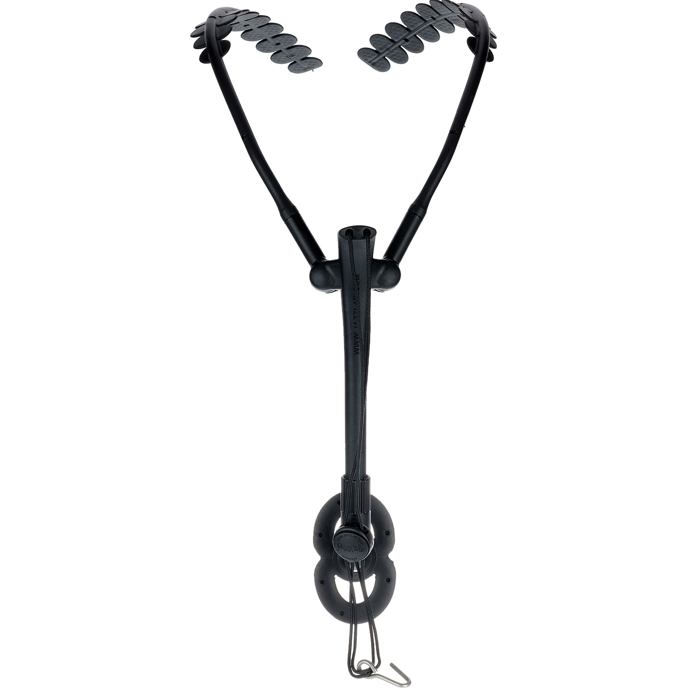 The JazzLab Bassoon harness is a superb alternative to traditional bassoon neck straps. This unique device eliminates stress from your neck. It transfers the weight of the instrument across your shoulders and to the stomach using the patented three-point support system. This makes the instrument feel lighter and allows you to play for longer periods of time without neck strain or backache.