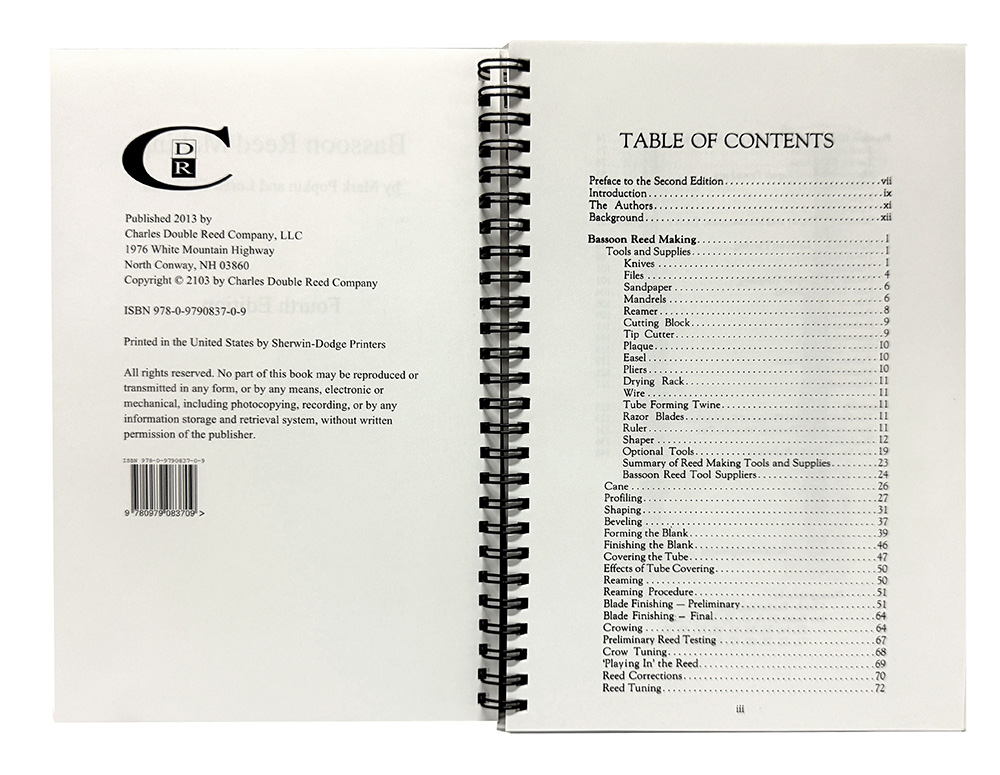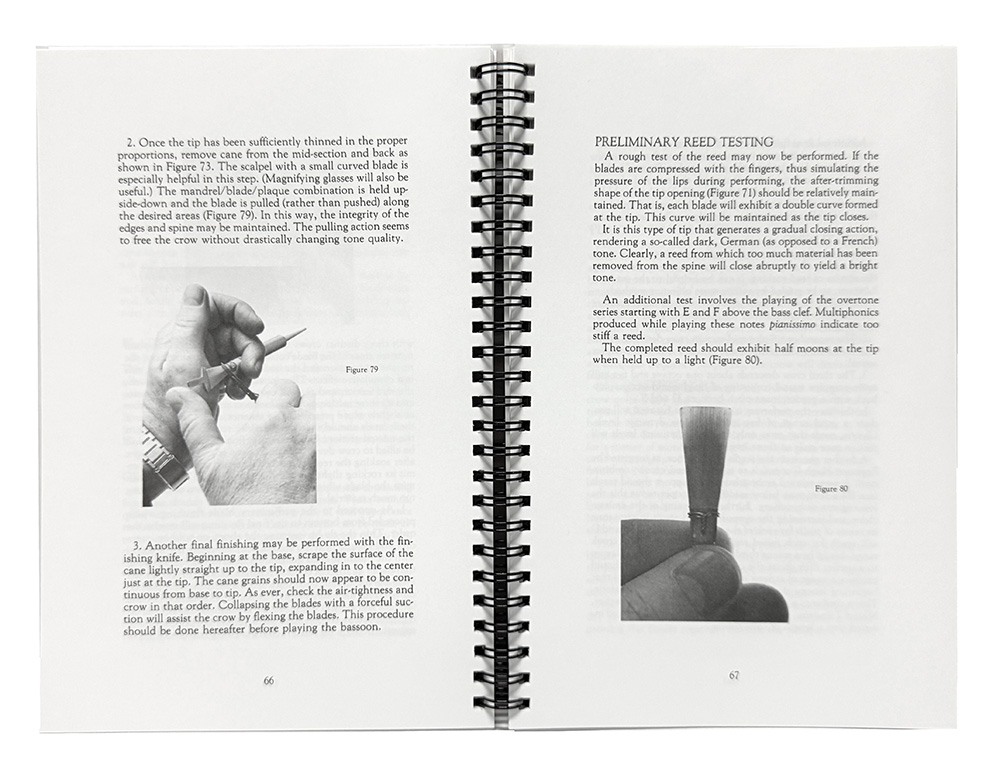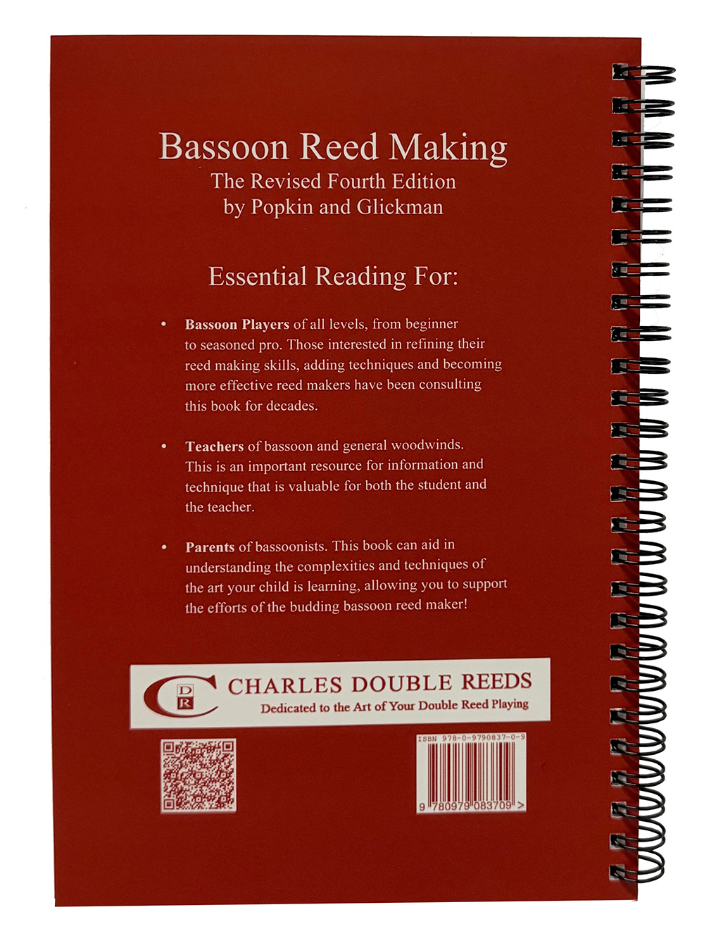 This is the most recently updated and edited 4th edition which is now spiral bound. If you have one bassoon reed making book in your library – this is the one to have.