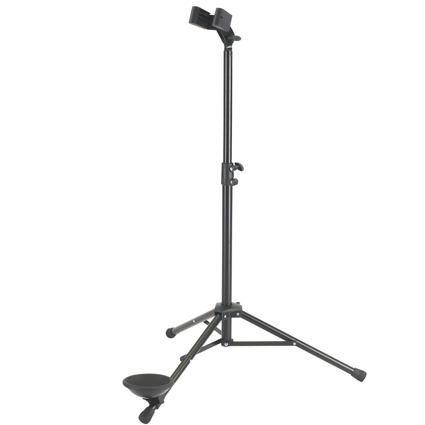 This stand has adjustable, felt-covered support arms and a compact, two-piece folding design. It breaks down to make travelling easier, but does not sacrifice balance or protection for your instrument.