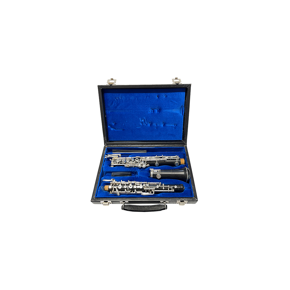 This oboe features left-hand F, F resonance key, low Bb, banana key, and both trill keys.