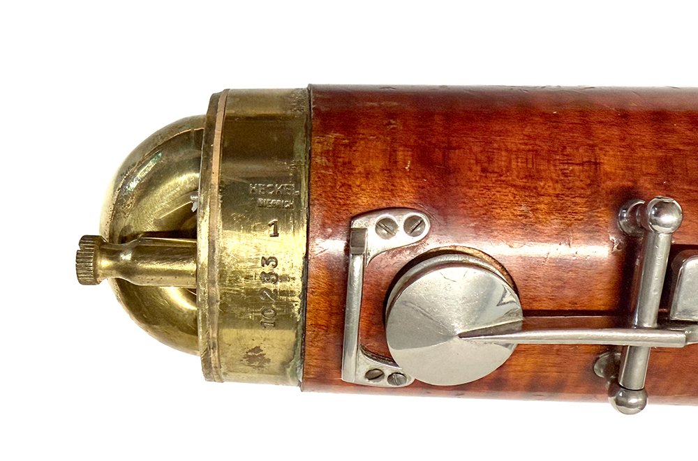 Heckel #10,233 has had three pro owners since it was new in February of 1959. This is one of the liveliest and most resonant 10,000 series Heckels we’ve ever had the pleasure to feature. It has been handled by top bassoon techs. It has the original keywork, with addition of a high E key by Charles Huebner. It has no signs of unnecessary screw holes or patches.