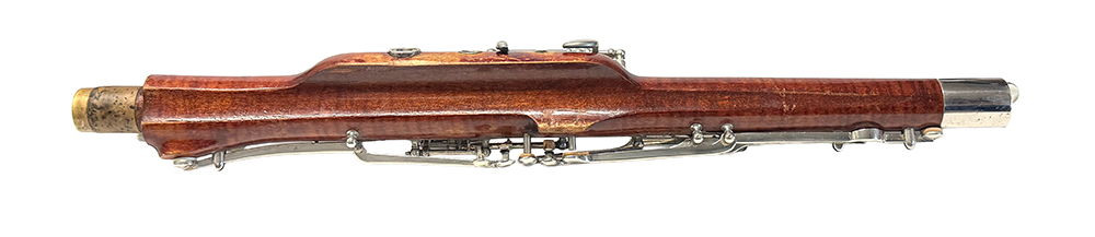 Body: The maple wood body is in excellent condition with average wear for the age. We can find no tenon cracks or similar anomalies. There is finish loss in the usual places on the wing joint and at some of the tone holes as shown in the photo. A new owner may wish to have these attended to.