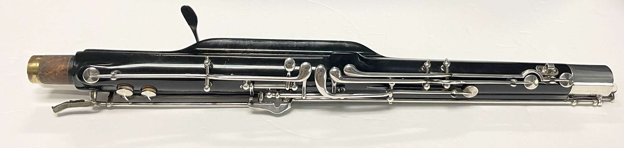 This instrument was purchased new at the Heckel factory by Sol Schoenbach in 1949 during the storied Philadelphia Orchestra tour of Great Britain. It was then owned by John Beck, a principal and second-seat player of the North Carolina Symphony, Florida Symphony, and numerous Sol Hurok Ballet Orchestra tours including the Bolshoi, Royal, and Stuttgart Ballets.
