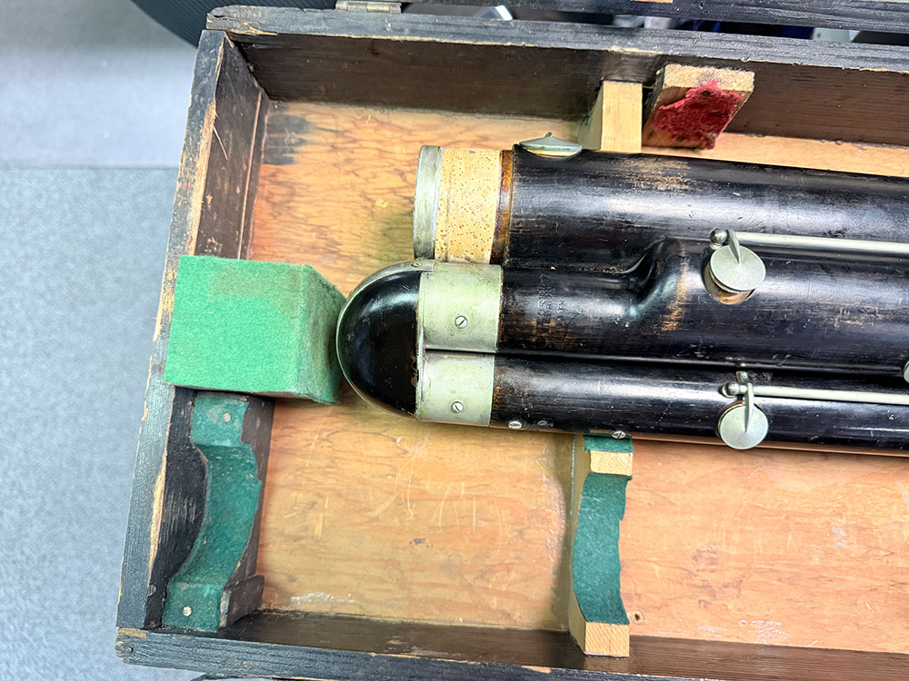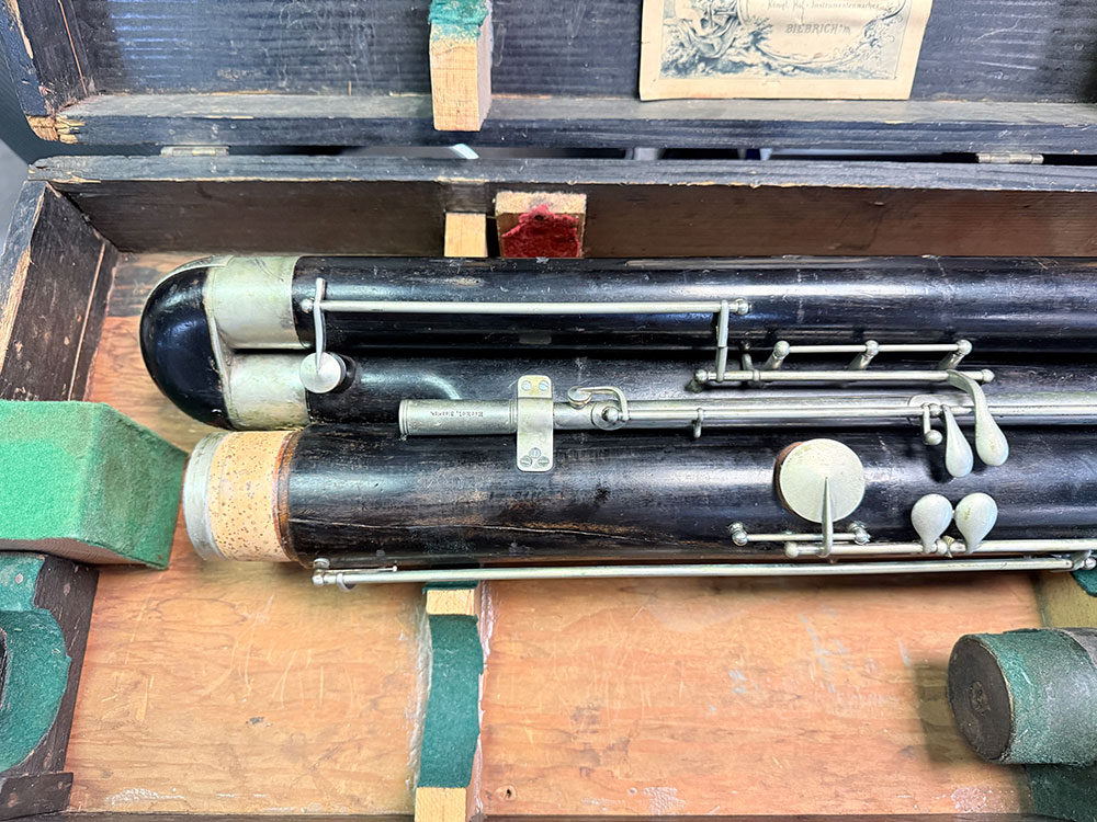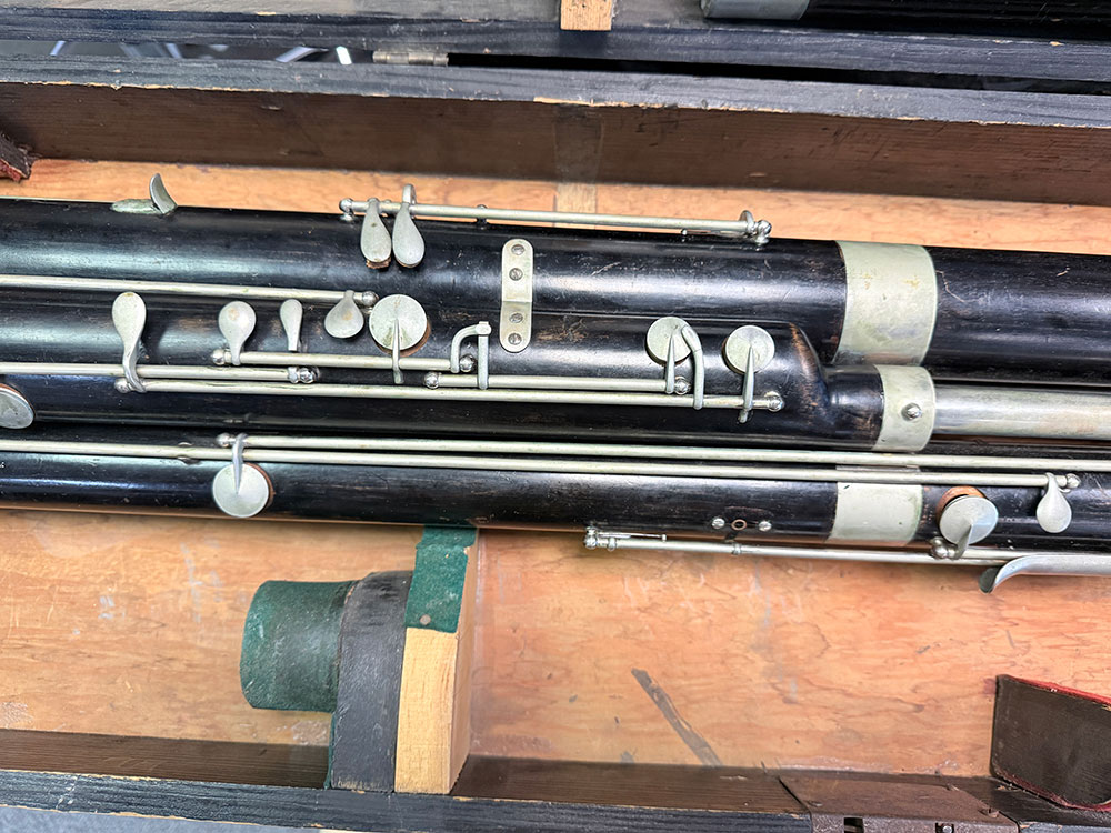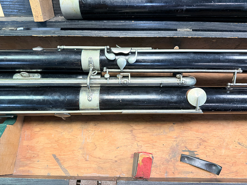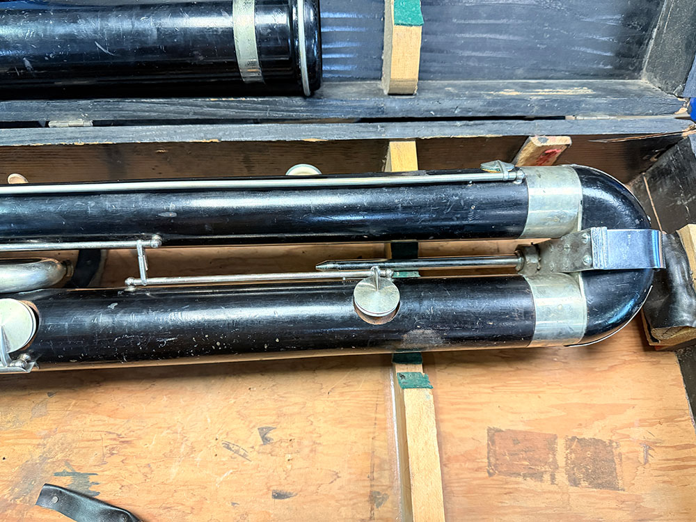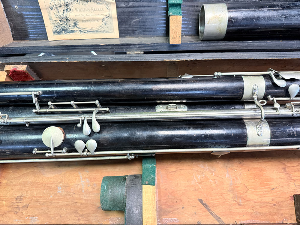 This classic vintage Heckel contrabassoon #147 left the Heckel factory on January 1st, 1903. It started life in Austria and made its way to the US early on. It has remained unplayed for many decades.