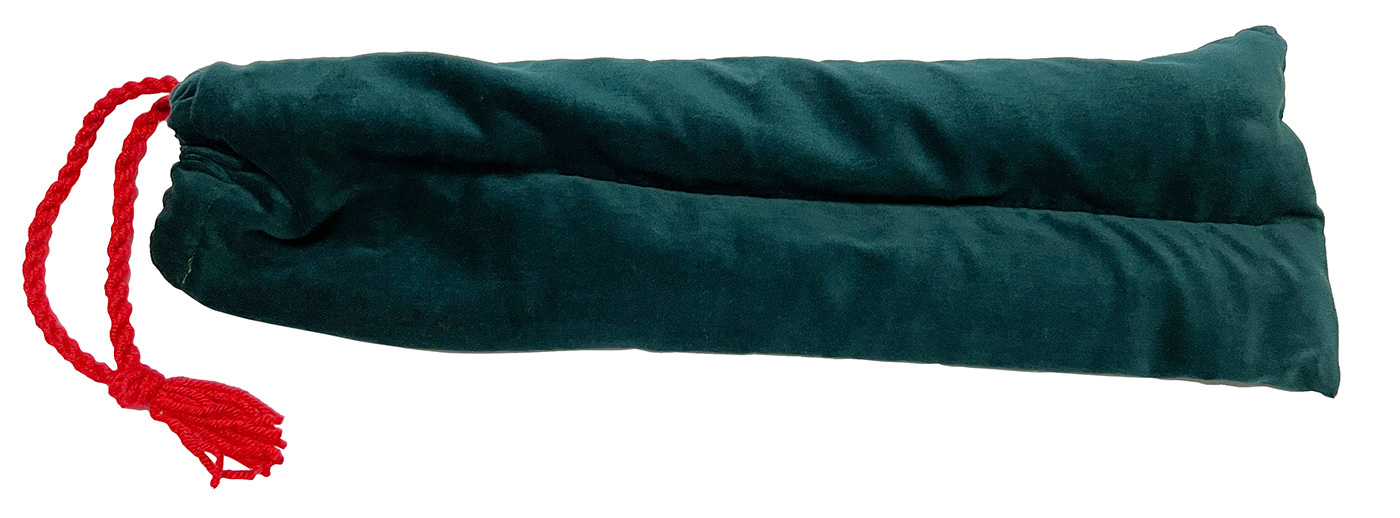 A handmade Vas Dias reed and a bottom staple, fingering chart, information/care page, and plush cotton corduroy bag with drawstring are included.