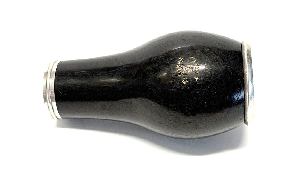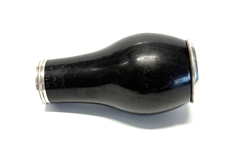 Body: The grenadilla wood body is in excellent overall condition and has just been cleaned and oiled. It has a top joint crack which was repaired by noted repair guru Bill Brannen sometime before 1974.