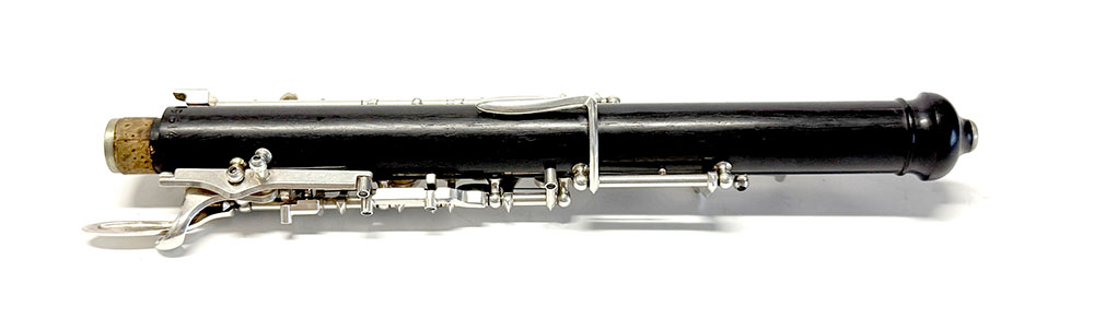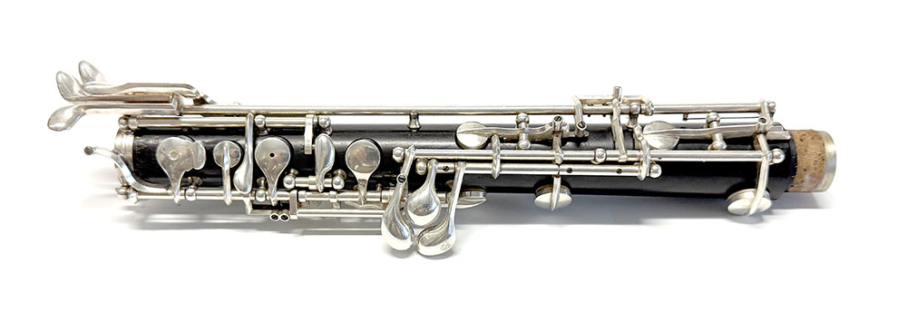 Keywork: The full conservatory, modified plateau silver-plated keywork system is in excellent condition. The silverwork and pads are in excellent condition as well.