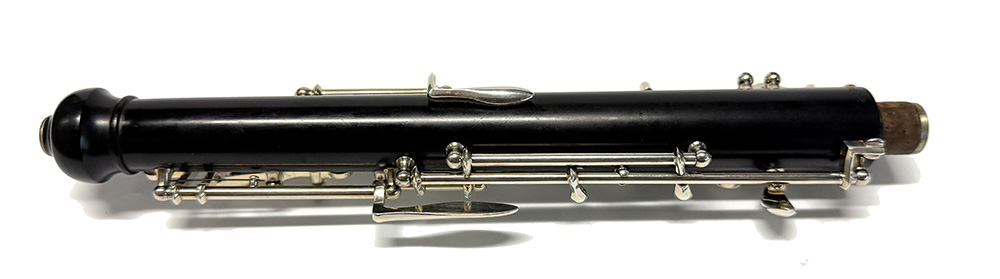 Keywork: The full conservatory, silver-plated keywork system is in very clean, oiled, and fully adjusted condition. It has a covered D key and a covered G key, which is a help for those who routinely need to cover those holes more effectively.