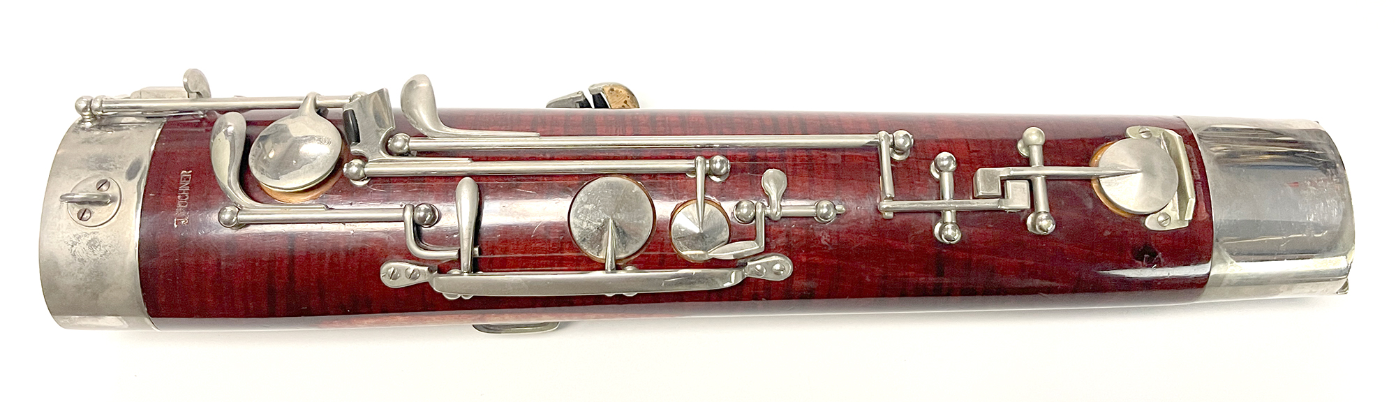 Keywork: The German system silver plated keywork system is in clean, oiled, and fully adjusted condition. Some pads are new, and it has very good condition pads throughout. It has the expected amount of wear.