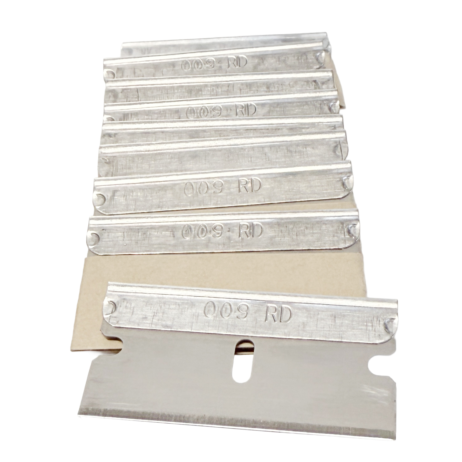 Precision ground, single edge carbon steel safety blades made in the US. Set of 10 blades.