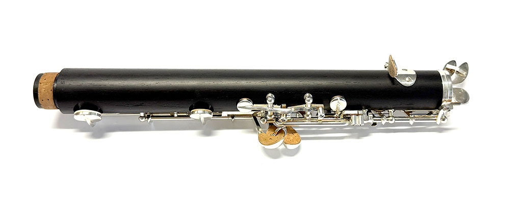 Keywork: The full conservatory, modified plateau silver-plated keywork system is in clean, oiled, and new condition.